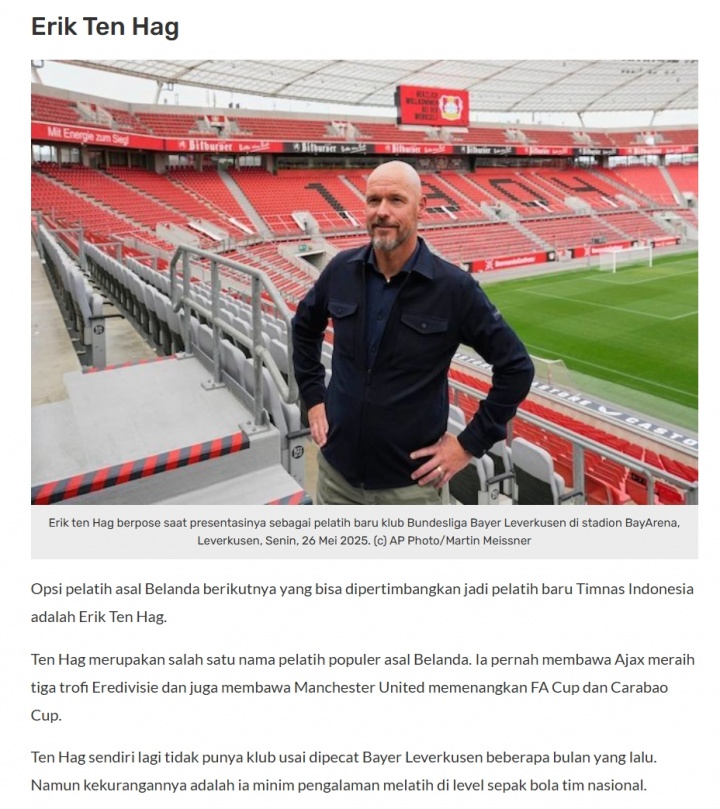 该媒体就此对新任印尼主帅进行了展望:“哪些荷兰籍指导教练员有潜力成为印尼国家队的新任主指导教练员呢?以下是我们的详细分析。”