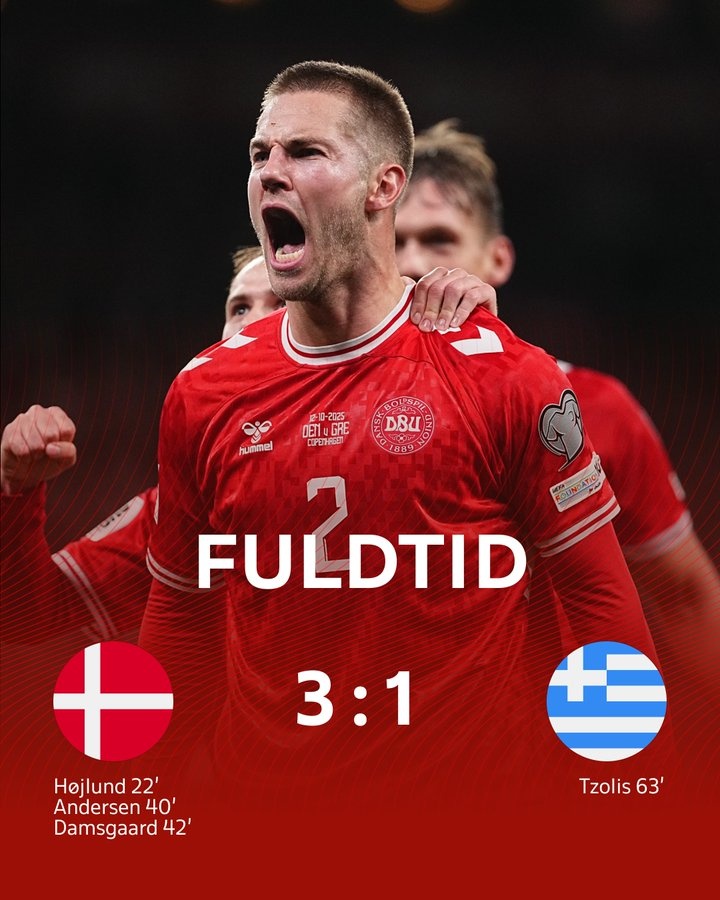 10月13日讯 世预赛欧洲区赛事 ,丹麦主场作战 3-1击败希腊。